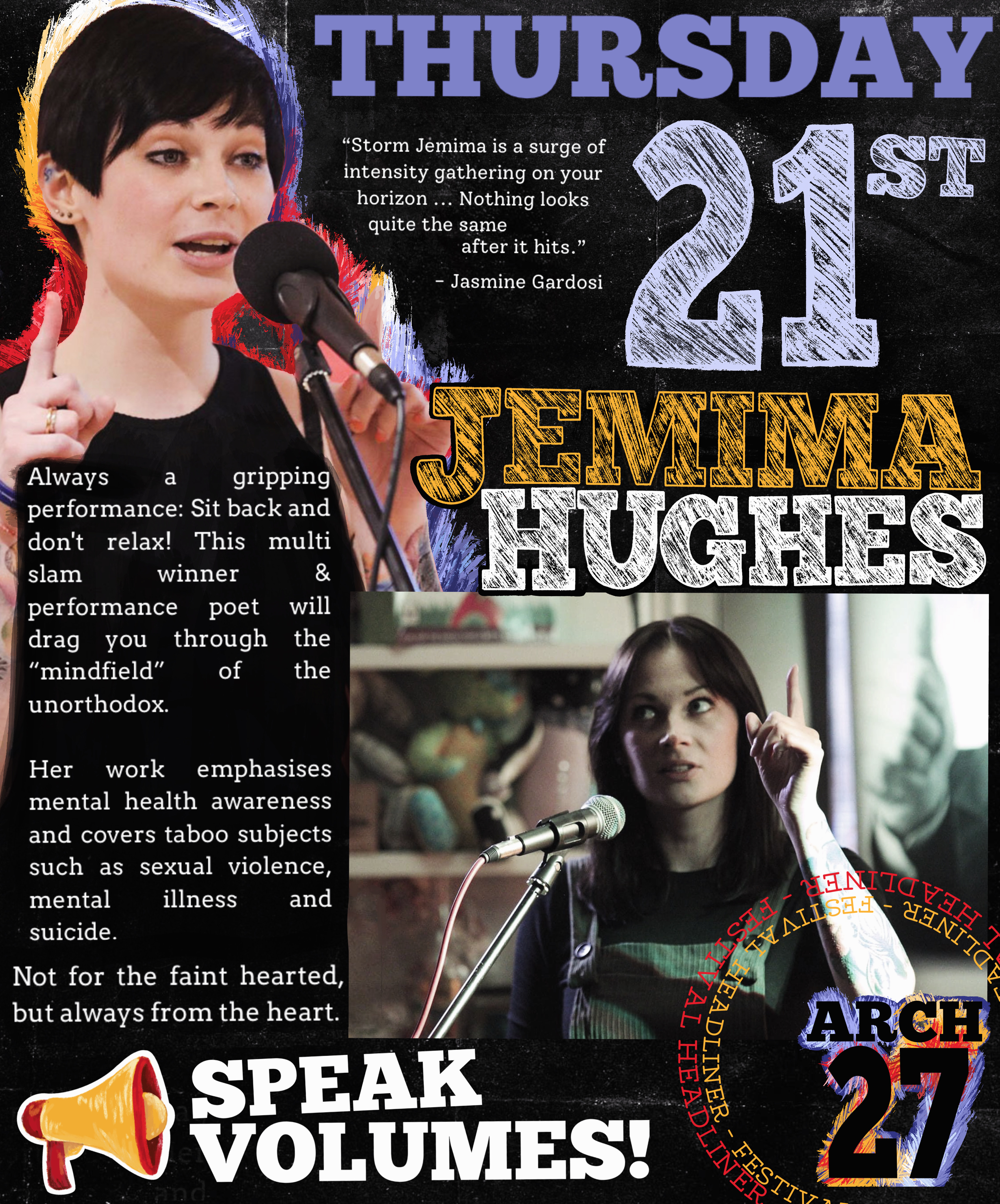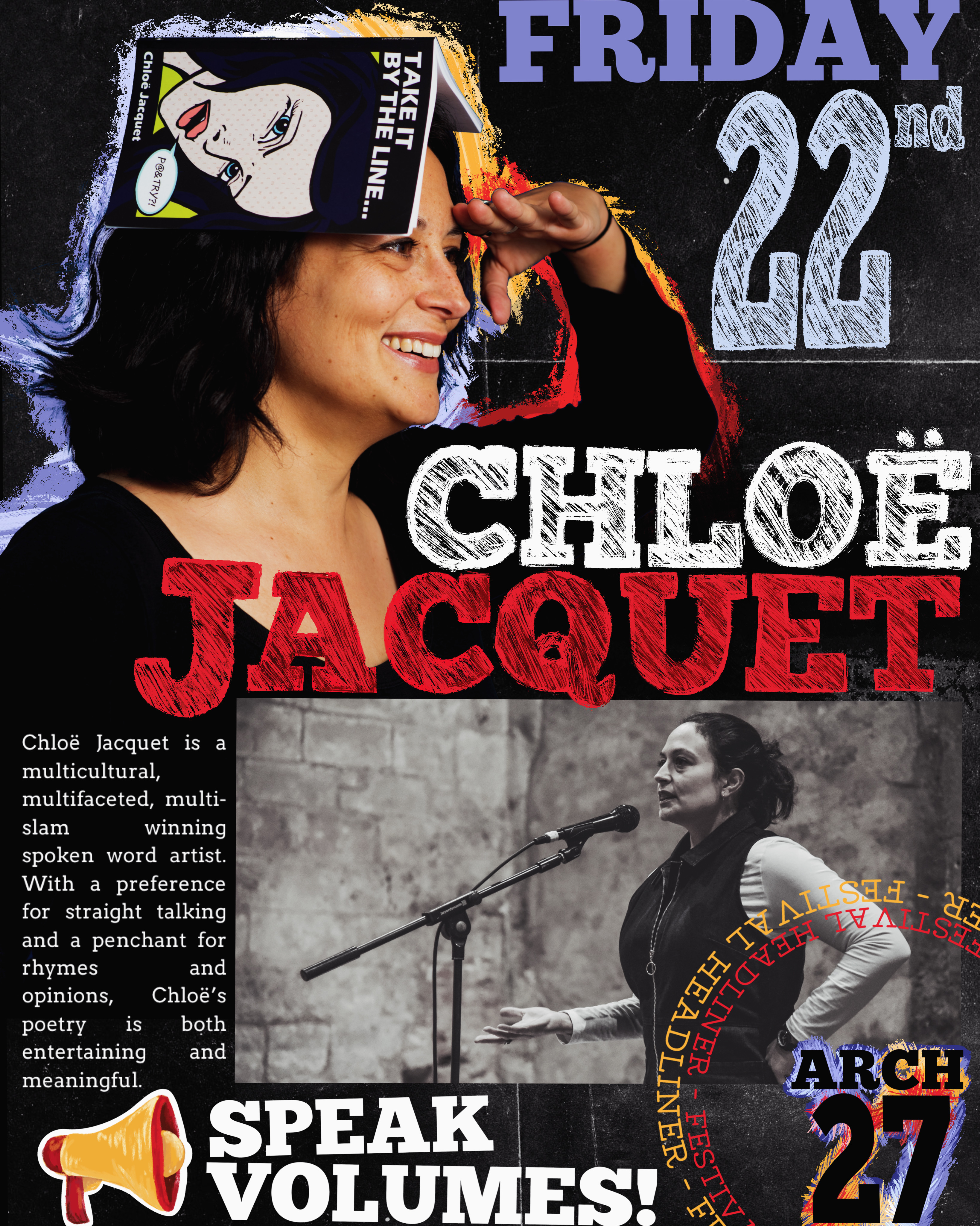 Performance poet, Laura J Round at the 2024 Speak Volumes Festival Slam