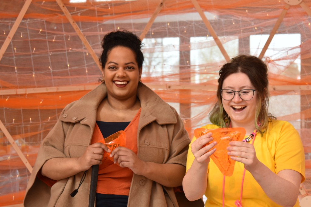Festivalgoers sunk into a world of pith, juice, and zest. This multi-sensory installation, produced by local artist Ella Abel, used scent, texture and glowing light to plunge its audience into the centre of an orange!